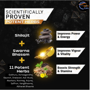- Made with 100% pure Himalayan Shilajit to boost stamina, and enhanced with Gold Bhasma for rejuvenation. Includes Ayurvedic herbs like Ashwagandha, Gokshura, and Black Musali to promote.