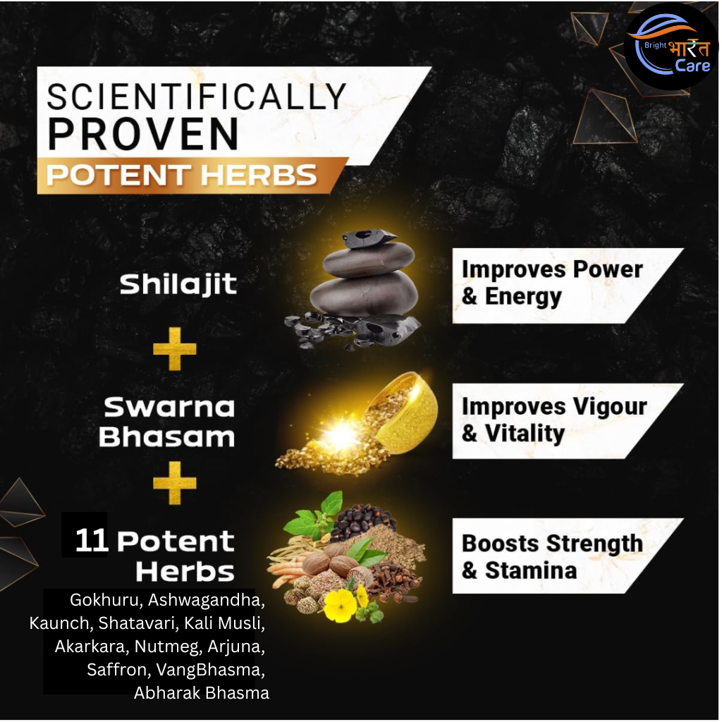 - Boosts stamina, strength, and energy in just 30 days! Backed by pre-clinical studies, Bright Bharat Care Shilajit Power Booster Capsules naturally enhance vitality, making them ideal for active and busy lifestyles.